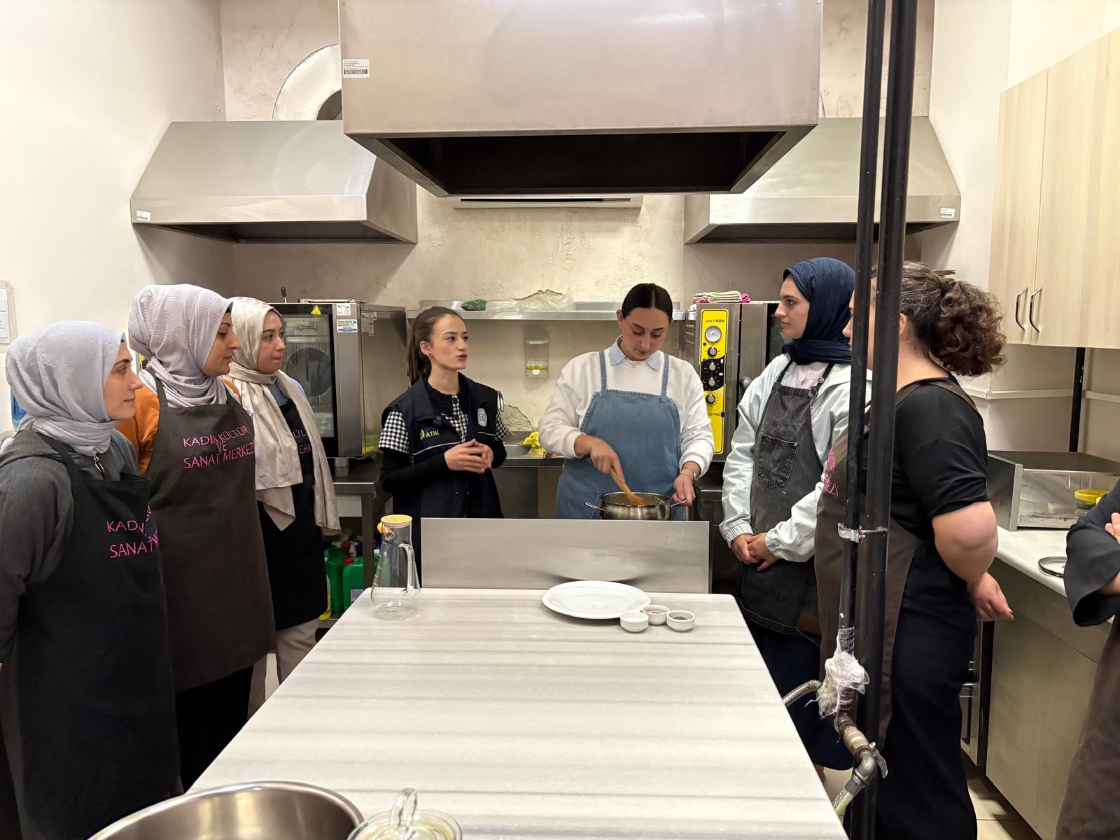 Kadın Kültür ve Sanat Merkezi’nde düzenlenen etkinlikte, gıda israfına dikkat çekmek amacıyla muz kabuklarından kek ve elma kabuklarından çay yapıldı. Katılımcılara, gıdaların tamamının değerlendirilmesi, atıksız mutfak alışkanlıklarının kazanılması ve sürdürülebilir tüketim bilincinin yaygınlaştırılması konularında bilgi verildi.